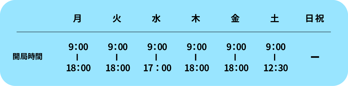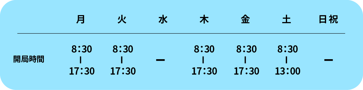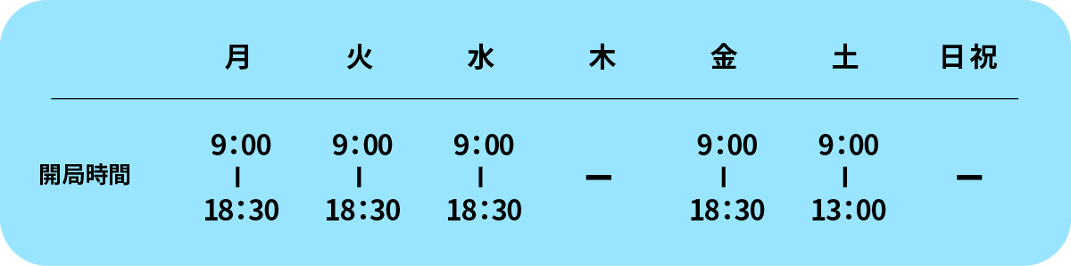 定休日 日曜日、祝日、水曜日