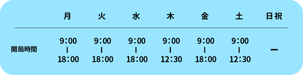 定休日 日曜日、祝日、木曜日