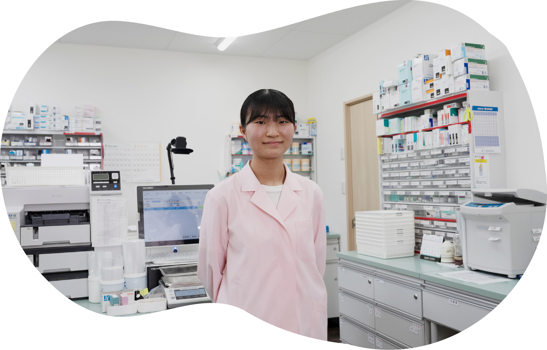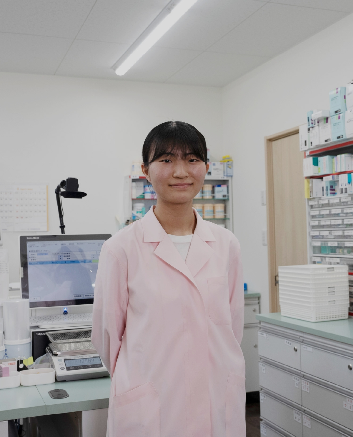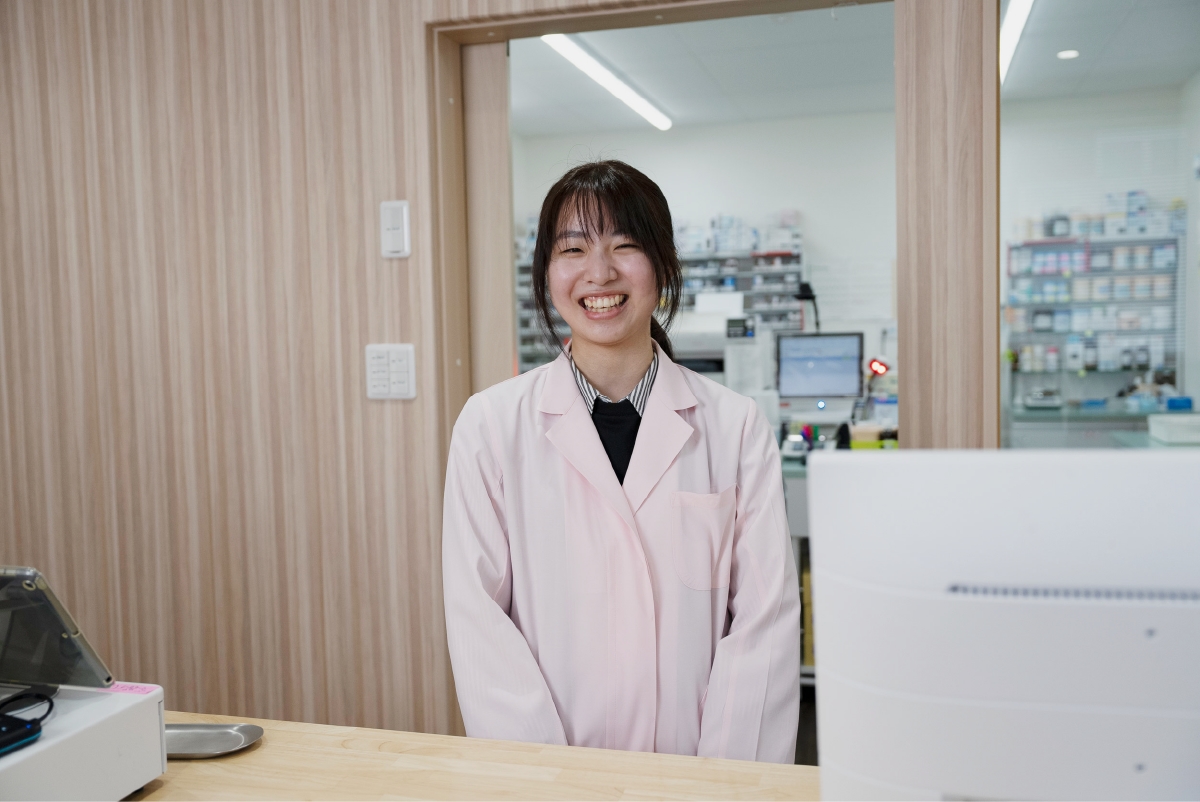 入社の決め手は「働きやすさ」です。私は結婚をきっかけに高岡に来たので、家事に慣れないうちは家のことを優先したいと考えていました。調剤薬局の面接はいくつか受けましたが、私の条件を快く承諾してくれたのが当社です。